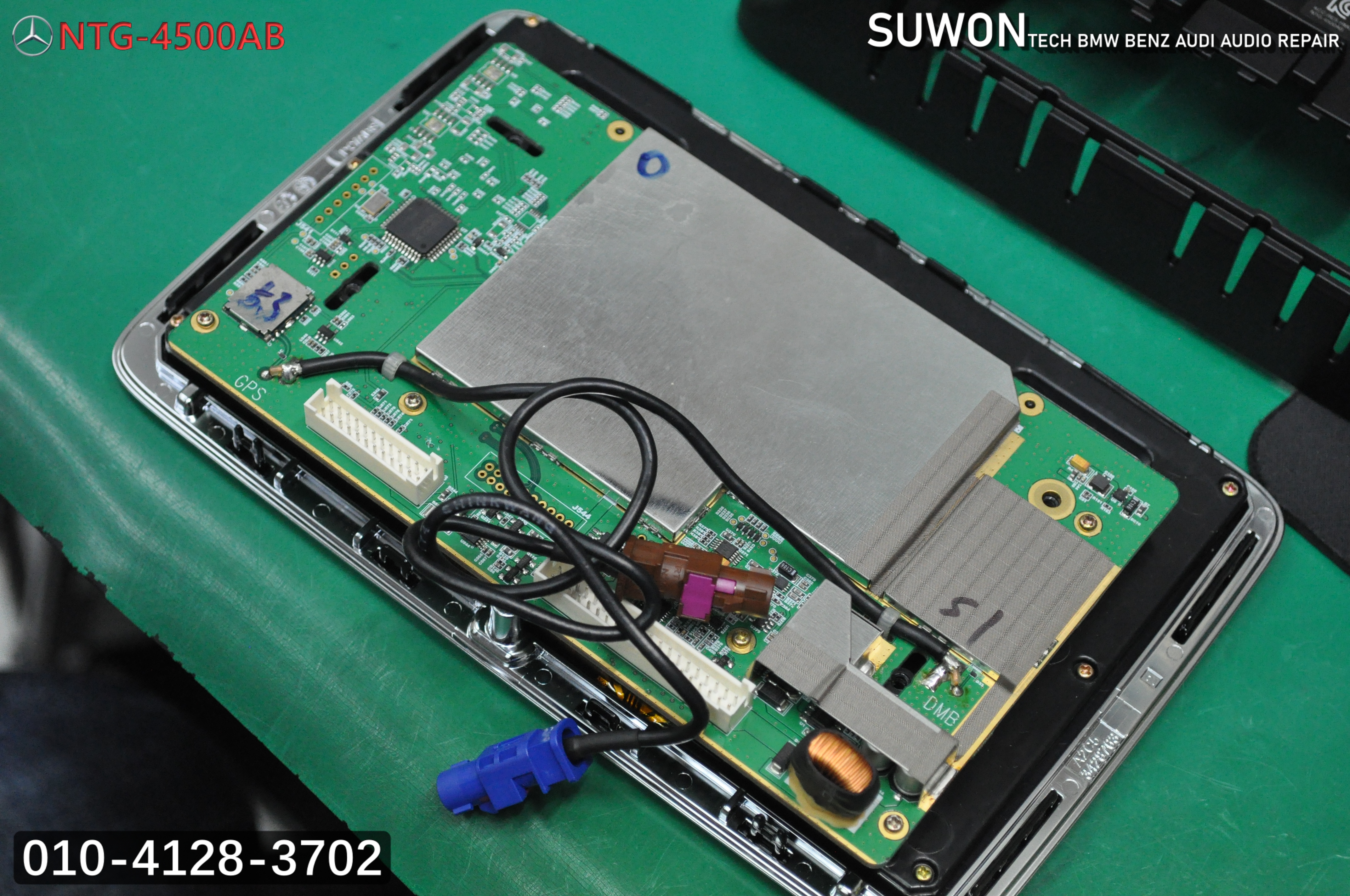 벤츠 GLA 네비수리 모니터수리 NTG-4500AB 화면깜박임 , 네비실행불량 , 후방카메라 전환안됨 메인보드 고장수리 - 수원테크(수입차 전문)