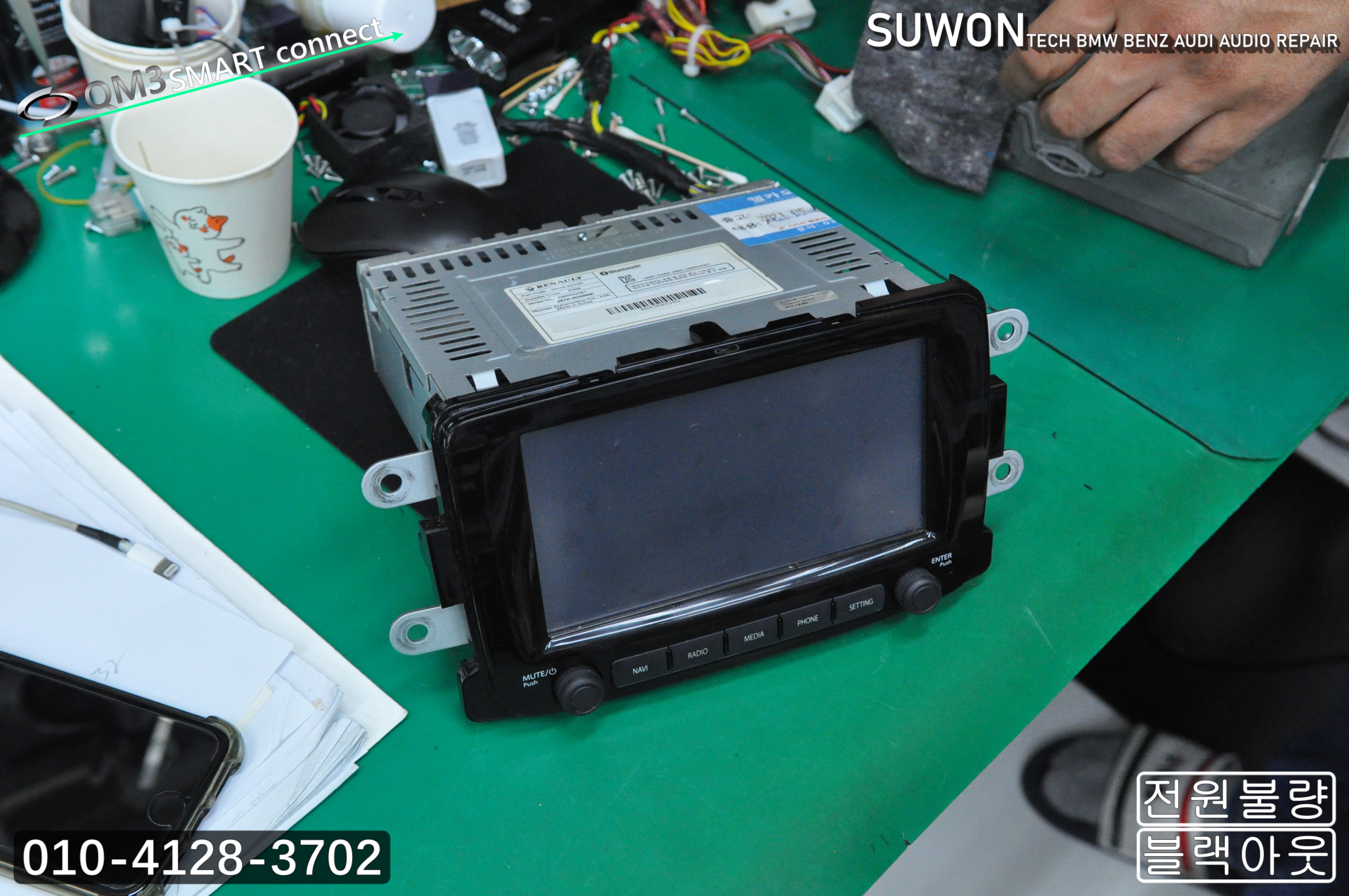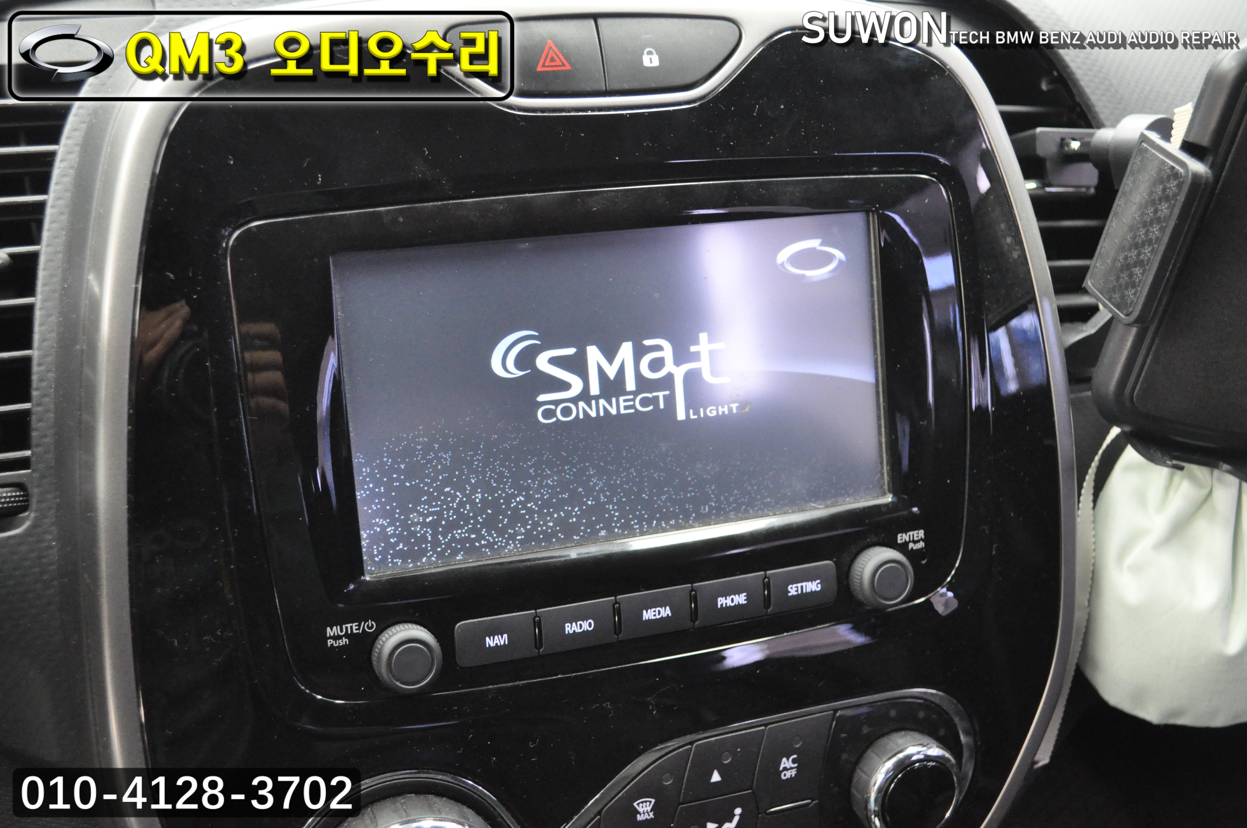 르노삼성 QM3 오디오수리 네비수리 smart connect light 스마트컨넥트라이트 (전원불량) 화면(블랙아웃) 메인보드 수리 - 수원테크